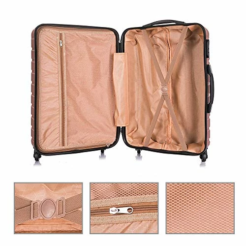 The 4 piece luggage sets include one 18 inch suitcase, one 20 inch suitcase, one 24inch suitcase and one 28 inch suitcase, which allows you to assign all yourclothes in perfect order for your own needs and preferences. The firm codedlock guarantees the security of your luggage. No matter the multi-directionalwheels, or the ergonomically designed telescoping handles will add muchconvenience to your trip. The spacious main compartment and zippered pockets keepyour travel essentials, your small valuables well organized. It is perfect forany trip you may have.Specifications: