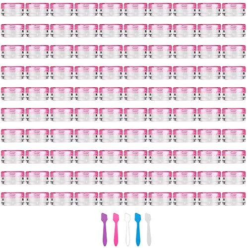 - Package includes 100 pieces empty clear plastic sample containers with lids and 5 pieces mini spatulas; Good for traveling.