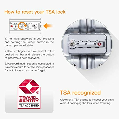 - TSA Dual Approved Locks – Case is adopted zipperless design to facilitate travel and business trips. It’s equipped with two TSA-approved Metal locks for each suitcase and quickly pass customs inspection. Dual approved combination locks effectively deter the theft and ensure only you or a TSA agent have access to your belongings. Humanized design ensures for belongings security and your peace of mind.