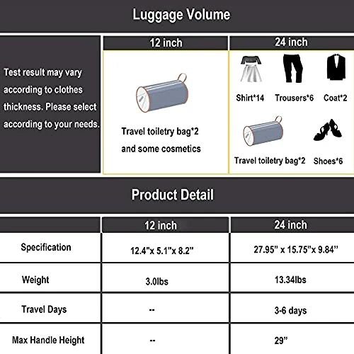- TSA LUGGAGE LOCKS: The suitcase is equipped with double TSA key locks (2 keys included). The international carry-on handbag is small enough to fit under your airplane seat and includes a combination latch-lock.