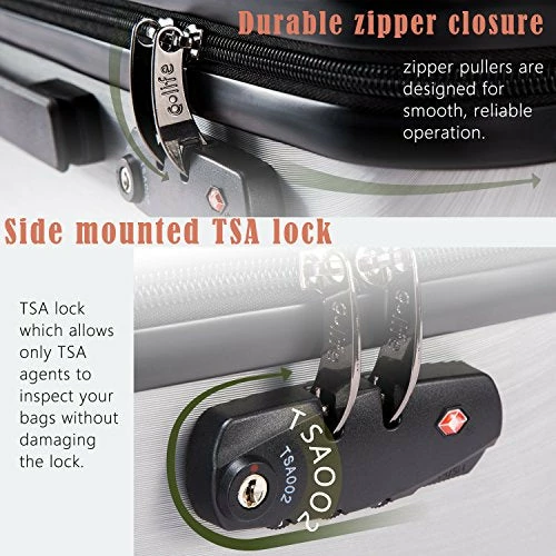 Details: COOLIFE luggage insists on excellent quality to make your journey safe and enjoyable. This set is ideal for personal and business travel which is in line with airline standard. It will transport your travel essentials effortlessly and stylishly. The suitcase features multi-directional silent dual spinner wheels rotate 360 degrees for easy maneuverability while the sturdy ergonomic telescoping handle with adjustable 3-step provides fluent and smooth experience. Fully-lined interior with a separate mesh pocket, functional elastic cross ribbons to secure the packed clothes. TSA-approved keyless lock (set by a combination code) guarantees the security of your luggage. The set can be stored inside each other, offering more convenience and saving storage space. What we want to offer our customers is more than a solid case, but the customer’s own style and cool life. Ready to travel with your cool life?Features: 360° double wheels: Four multi-directional smooth and silent 360° double wheels, for very high ride comfort. Material : Lightweight durable ABS+PC material ensures long-lasting usage and safety. Type of closure : Exquisite and durable zippers closure. Telescope handle: Push-button locking internal retractable handle system.Lock: TSA combination lock with resettable code for secure travel in the USA. Full-lined interior: Fully-lined interior with separate mesh pocket, Functional elastic cross ribbons to secure the packed clothes.3 piece luggage set fits inside each other, features one 28inch suitcase for consignment, one 24inch suitcase for checking in and one 20inch suitcase suitable for carrying onto the plane. Measures: Size: 20′ L22in* W9in* H15in24′ 27in* W11in* H17in28′ L30.5in* W12in(14in when it is expandable)* H19.5inCapacity : 20in38L 24in60L 28in 93LWeight:20in6lbs 24in7.3lbs 28in9.7lbsTravel days: 20in1~4days 24in4~7days 28in 7~9days