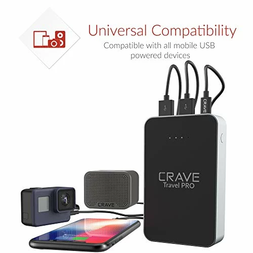 - UNIVERSAL COMPATIBILITY: The Crave Portable External Battery Charger works with today’s popular brands, including iPhones and iPads, Samsung, Google Pixel, LG, and other Android devices. It also works with your GoPro and tablets!