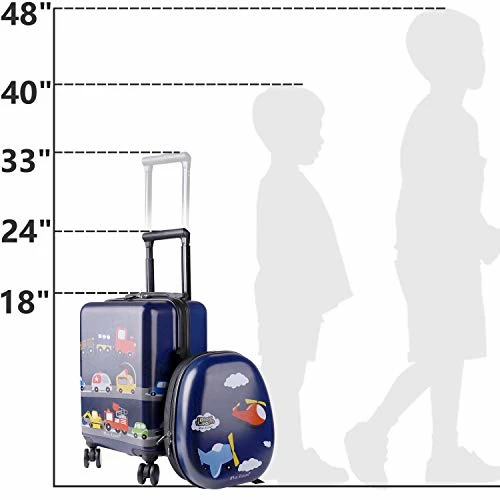 - 【Perfect Size for Kids】Luggage size: 11.5″ x 8.5″ x 18″. Backpack size: 13.5″ x 10.5″ x 4.5″. Luggage handle height is adjustable for parents and children. Perfect to carry-on for flights, or to take on weekend trips and sleep overs.