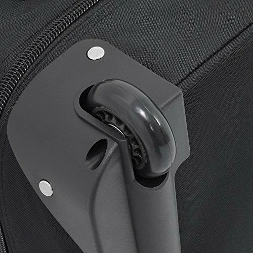 - Telescoping handle and in-line skate wheels create smooth rolling.