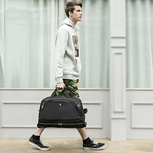 - *SMALL CARRY ON LUGGAGE WITH WHEELS: Small carry on luggage with wheels have 2 smooth wheels hidden handles on the bottom of the duffle bag. It is more convenient and portable to carry heavy luggage.High quality telescopic lever handle.(max length 17.3 inch).Can be used as trolley bag or tote bag.