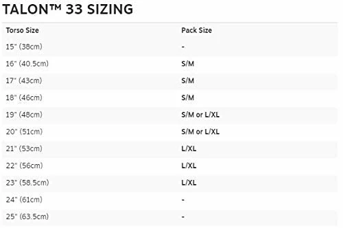 Details: Designed for dynamic body movement, the Talon 33 is a streamlined top-loader for light-and-fast overnights or committing day trips. An injection-molded AirScape™ backpanel and a continuous-wrap harness and hipbelt allow the pack to move with you no matter if you’re bagging peaks or bikepacking. Ideal for a variety of activities, this lightweight pack features trekking pole and ice axe attachment points as well as a reservoir sleeve. Constructed with high-quality bluesign®-approved recycled high-tenacity nylon; a sustainable build that’s tough and durable to endure years of use. Integrated BioStretch seams offer maximum flexibility without sacrificing stability for dynamic body movement. Spacermesh over die-cut foam provides breathable, comfortable contact surface. Harness system easily adjusts to fit various torso lengths.