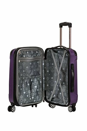 Details: This carry on is made of ABS. This material is extremely lightweight, durable, and protects the contents of your luggage. Four multi directional spinner wheels rotate 360 degrees for easy maneuverability. This luggage allows you to pack more while avoiding the excess weight surcharges imposed by most airlines. Multi-directional spinner wheels for easy maneuverability. Modern internal chrome telescoping handle with push button handle. Interior mesh and zip pocket and elastic pocket 5 year 22″X13. 5″x10″ (with wheels) weighs 7. 5 lbs.