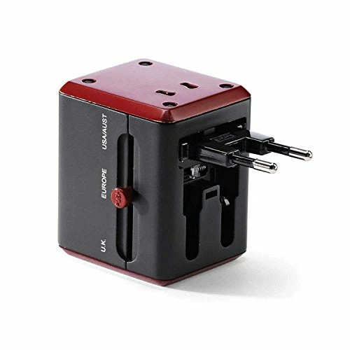 Details: Have access to power outlets in 150 countries. Fits outlets in Australia, China, us, Europe and UK. Sleek compact design allows this unique universal adapter to stow easily in smaller compartments and maximize packing space. Two USB ports allow for smaller electronics to charge.
