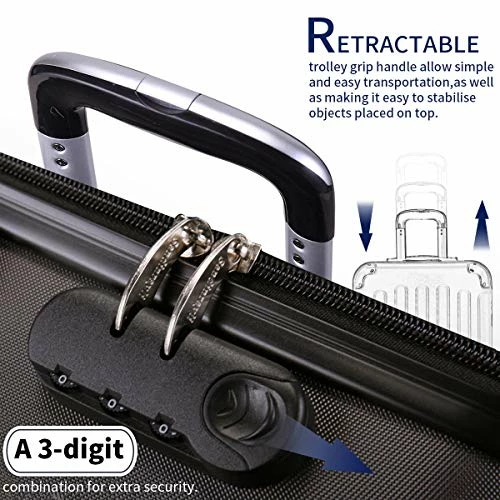 - ⚽【Humanized Designs】a. The adjustable and ergonomic telescoping handle help you find the most comfortable position to pull the suitcase. b. 4 multi-directional spinner wheels roll silently and smoothly. c. The side mounted coded lock protects your privacy and property.