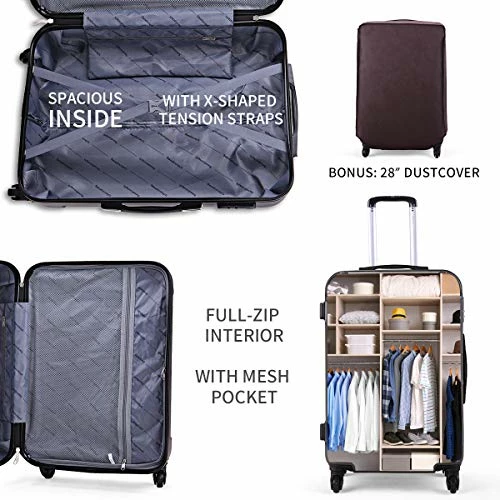 - ⚽【3 Pieces Luggage Set】This luggage set comes with a 20” suitcase (meets carry-on size), a 24” and a 28” suitcase (multiply your packing space and is ideal for long trip), separately weighing 7 lbs, 8 lbs, and 10 lbs.