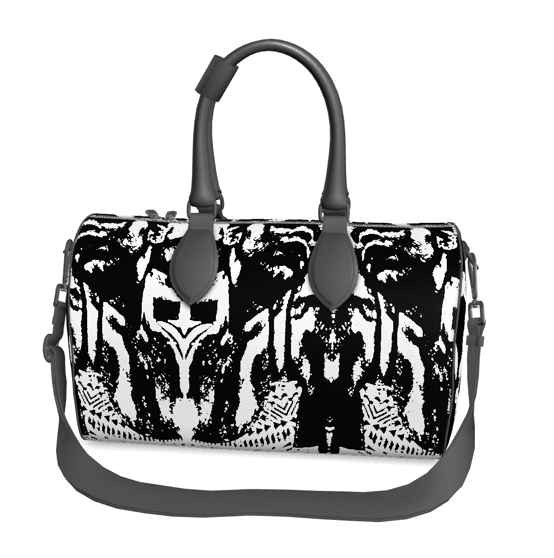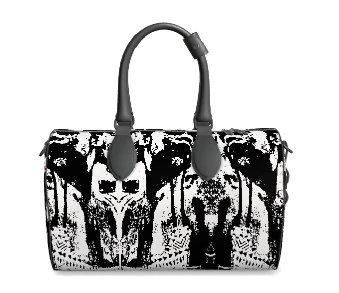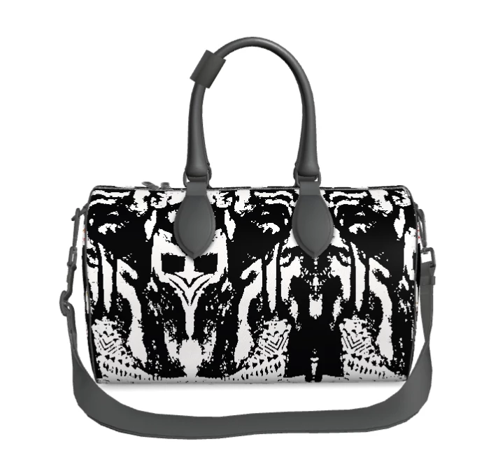 The West COST Dripper Leather Duffle Travel Bag original artwork +leather work strap included for easy carry-on Gold, gunmetal, or nickel metal hardware Beautifully painted edges Three thread colors: gray, cream, or charcoal Black faux suede inner lining Detachable/adjustable webbing strap Double zip with black leather zip pullers Metal studs on the base for floor protection Large: 9.1″ x 20.1″ x 11.2″, 3.3 lbs Inner pockets: Large – 1 zipped, 2 open Unisex design, perfect for men and women Handcrafted on demand