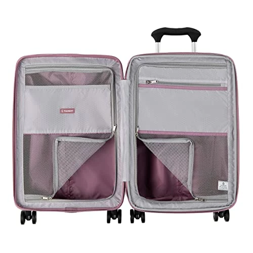 Details: Keep it light when carrying on with the durable, well-equipped, lightweight Maxlite® Air Carry-on Expandable Hard sided Luggage with Spinner Wheels. This pink suitcase has 100% polycarbonate exterior that is engineered to flex if impacted to prevent splitting, cracking or punctures, and a stylish exterior finish reduces visible scratches or scuffs. Great for checking in too, this hardshell luggage has a built-in lock allows TSA authorities to safely unlock and relock the bag for inspection when needed, and a zippered expansion option maximizes packing capacity when needed. The interior lining of this luggage carry on is made from 100% post-consumer recycled plastic bottles to help reduce environmental waste and treated with H2O guard for moisture resistance. This hard shell suitcase has two zippered interior divider panels and built-in accessory pocket keeps everything you pack organized, separated, and secure. Glide with ease on eight smooth-gliding spinner wheels that rotate 360° led by a PowerScope Lite handle that locks in two positions (38” and 42.5”) for users of different heights. A patented Contour Grip with rubberized touch points makes maneuvering easy and comfortable. This spinner hardside suitcase is backed by our Built For a Lifetime Limited Warranty with Trusted Companion Promise that even covers damage caused by airlines or other common carriers for the first year of the lifetime warranty.