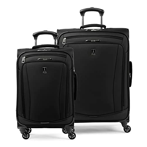 Details: Two pieces of luggage that do the work of three! The Travelpro® Runway® 2-piece Carry on luggage & Check-in Set includes a Travelpro® Runway® Carry-on Expandable Spinner and a Check-in Expandable Spinner that converts from a medium check-in size bag to a large check-in size bag when fully expanded. Created to serve separate functions, both of these durable softside luggage bags are made with resilient polyester fabric that is treated to resist water and stains. This travel luggage each offer two external zippered pockets, a full-length interior lid pocket, side accessory pocket, and adjustable hold down straps for organized packing. Smooth-gliding, 4-wheel spinners rotate 360° to provide superior maneuverability led by height-adjustable handles with patented ProGrip™ design for hand comfort. Size and expansion is where these bags differ most. The Travelpro® Runway® carryon luggage with spinner wheels has been sizer bin tested to fit in the overhead bins of most major domestic airlines and offers a tapered expansion feature that adds up to 2” more packing capacity. The checked luggage in this spinner set is a medium-sized bag that features a unique, 3” expansion option that increases the bag’s capacity and size to a large check-in spinner (62 linear inches). No need to buy a medium suitcase and a large suitcase with spinner wheels or even decide which to bring. Whether you over pack before departure or over shop at your destination, you will never have to worry about running out of space!