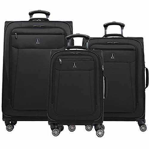 Travelpro Skywalk Limited 3 Piece Spinner Suitcase Set – Softside Expandable Travel Luggage With Spinning Wheels – Carry On & Checked Bags, Black