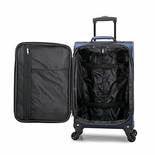 Details: Travel in style with your essentials packed inside this Aviron Bay luggage collection from U. S. Traveler. U. S. Traveler’s Aviron Bay luggage collection is crafted from durable twill polyester. Each case is detailed with four multi-directional spinner wheels, a telescoping handle for easy mobility, and top and side grab handles that make it easy to lift. The interior includes tie-down straps to hold garments in place and a zippered mesh pocket underneath the lid. The added expansion option also helps with those extra purchases made while traveling! Made from durable twill polyester fabric. A push-button multi-stage handle adjusts to different heights. A large interior zippered mesh pocket for easy organization. Features four 360-degree spinner wheels for easy mobility. Includes a 2-inch expansion gusset for extra packing space. All pieces roll upright so there is no weight on your arm. Includes a full interior lining with compression straps to keep items in place. Top, bottom and side carrying handles for easy handling. The exterior boasts two large exterior pockets for last minute items. 23″ Spinner’s Exterior Dimensions: 22. 5”H x 14”W x 8”D + 1. 5” Exp. (6. 5 lbs. ) 23″ Interior Dimensions: 20”H x 14”W x 8”D + 1. 5” Exp.