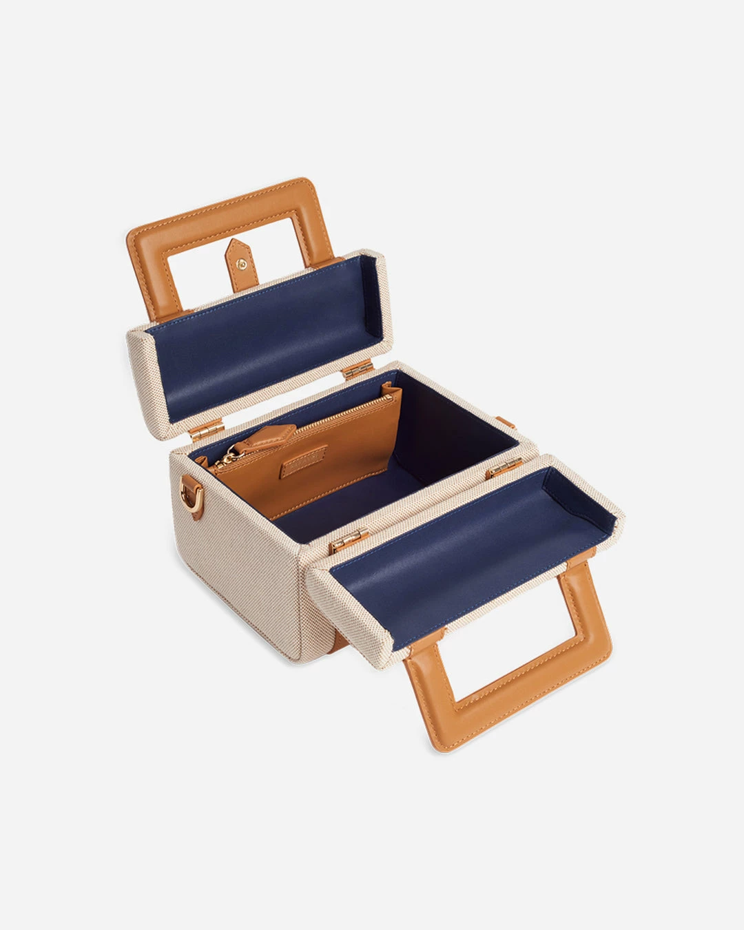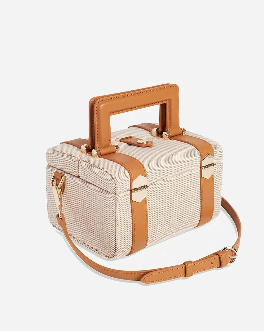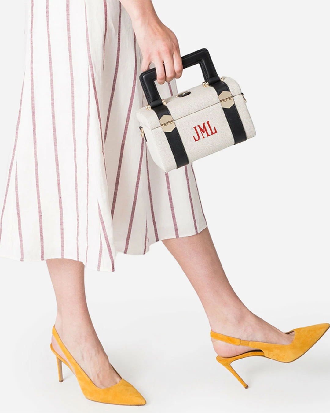 Train travel-inspired and sure to be admired, this sophisticated handbag is perfect for carrying to work, out at night, or throughout the day. It will elevate any jeans and t-shirt look or stand up to your most instagrammable ensemble.