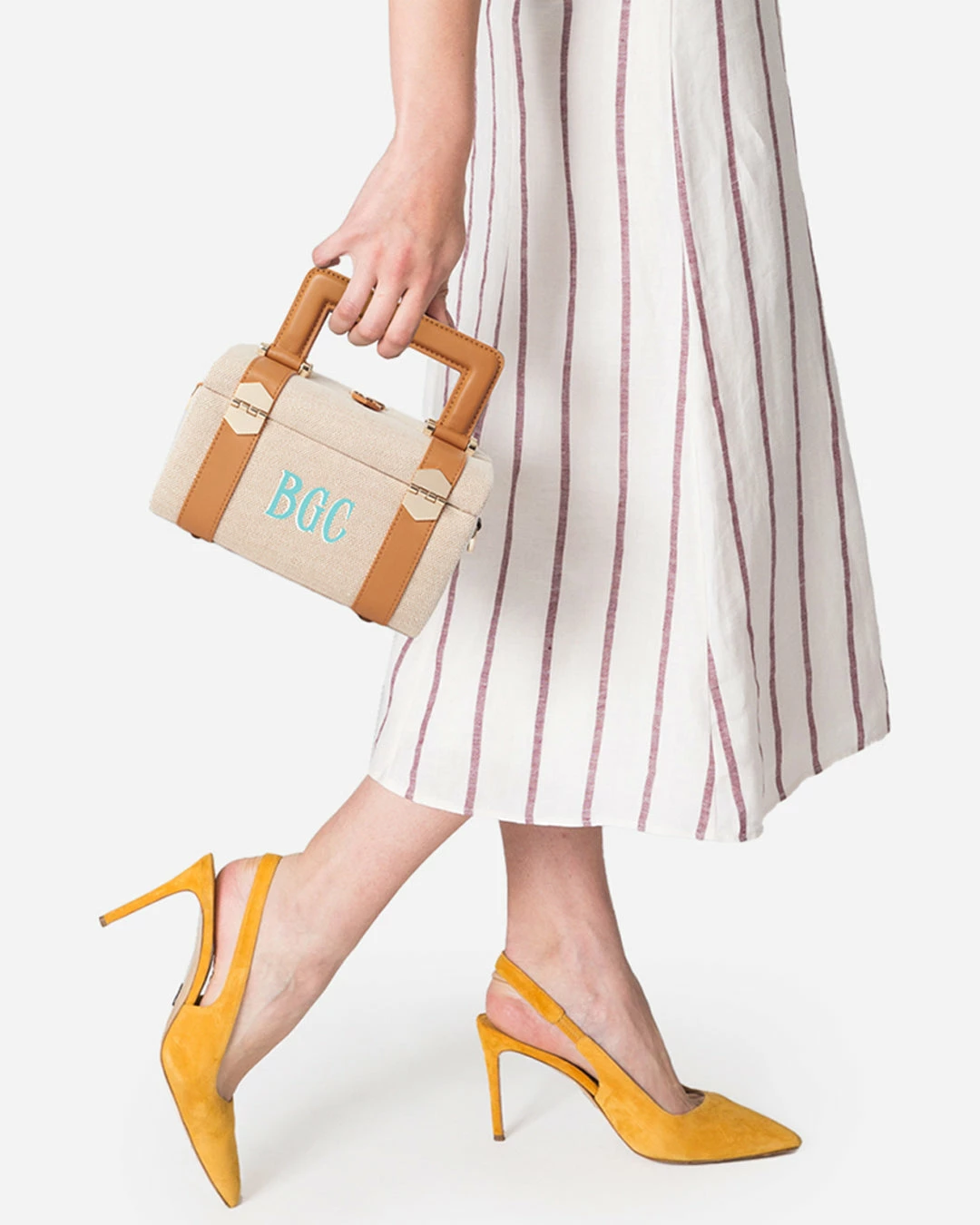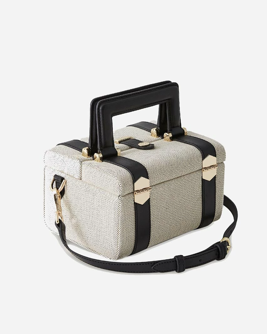 Train travel-inspired and sure to be admired, this sophisticated handbag is perfect for carrying to work, out at night, or throughout the day. It will elevate any jeans and t-shirt look or stand up to your most instagrammable ensemble.