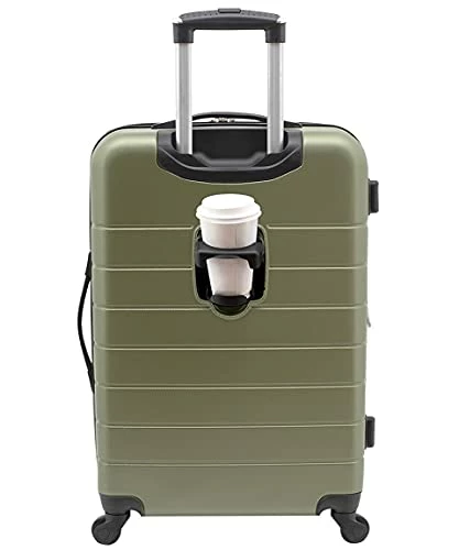 - Patented 3-in-1 cup holder, USB port, and phone holder located in back of luggage for travel convenience