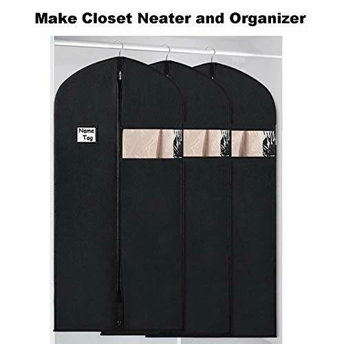 - Know What’s Inside: The foldable dress coat protector bag with clear window eliminates the guess work of trying to figure out what’s inside and a Plastic PVC ID card holder of the jacket garment bag for name tag or identification card. Convenient and Time saving.